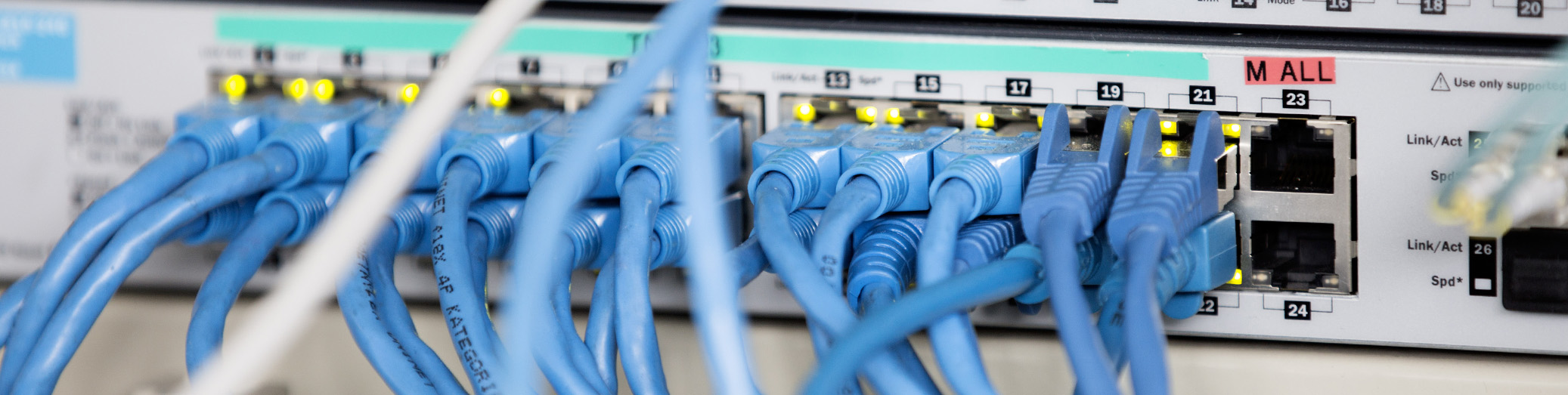 Wir führen alle notwendigen Verkabelungsarbeiten vom Serverschrank bis hin zu den Anschlusspunkten am Arbeitsplatz durch. Nach erfolgter Installation wird die komplette Verkabelung auf ihre Funktion geprüft.